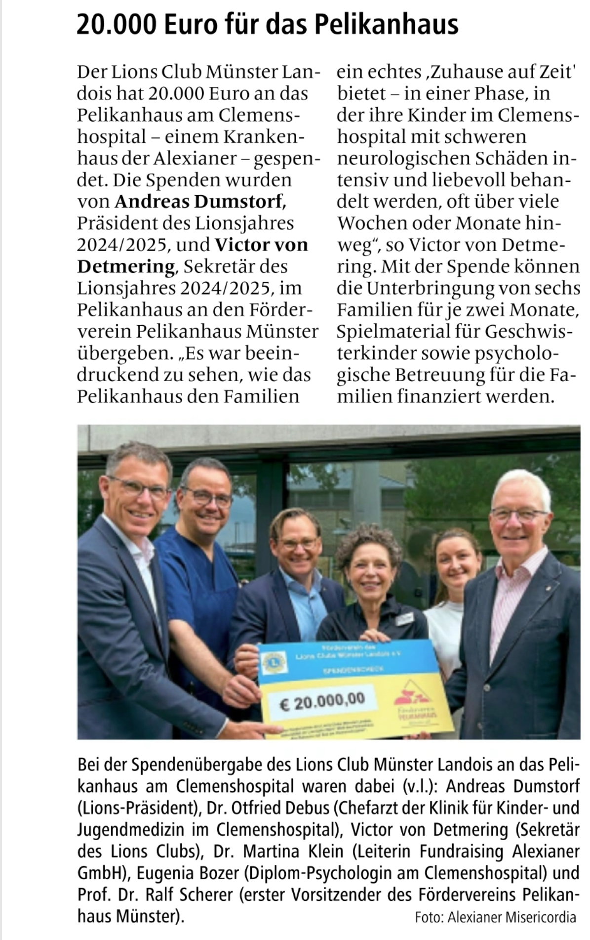 Artikel im Lions-Magazin zur Spende an die Münster Tafel